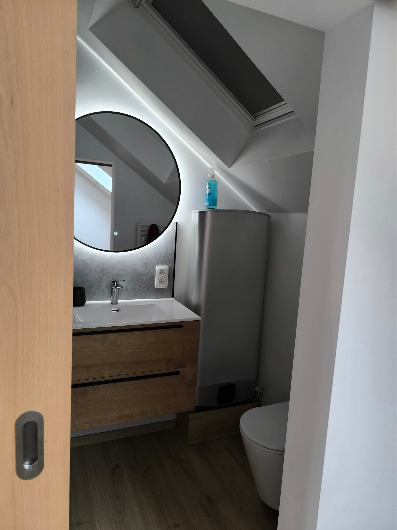 - Salle de bain avec douche à l’italienne, boiler électrique, radiateur chauffe-serviettes